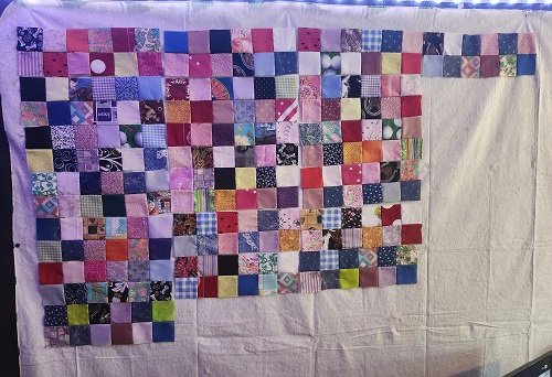 Hand Sewing is all I have to share this week. I did work on the plastic canvas blocks at home over the weekend, but very little.