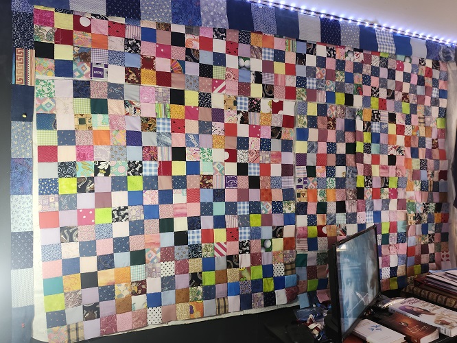 - Finish the last 2 blocks on the hand sewn quilt and sew as many rows together as I can.–Done