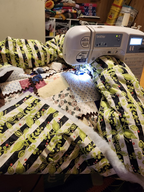 - Sandwich the rick rack quilt.–Done