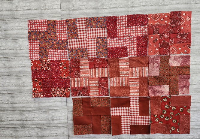 - Make the red pinwheel blocks–done